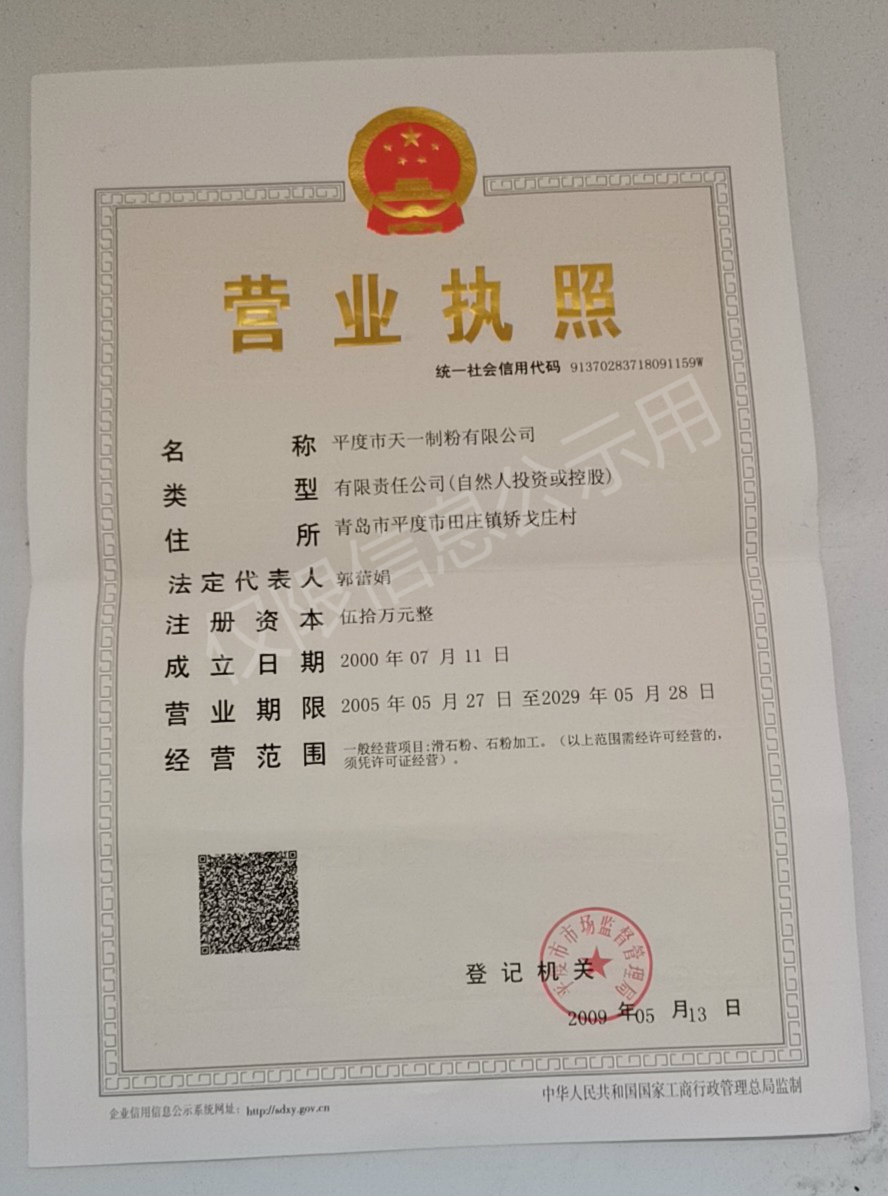 本公司生產(chǎn)的商標(biāo)為天一牌滑石微粉產(chǎn)品經(jīng)準(zhǔn)確儀器檢驗,細度在20微米-2微米,通過概率可達百分之90以上約800-5000目,根據(jù)用戶的要求選礦加工,白度可達85-96度以上,廣泛應(yīng)用于涂料、橡膠、造紙、油墨、彩鉛、制藥、包裝材料、石油化工等行業(yè),產(chǎn)品在各地均受到用戶的好評。